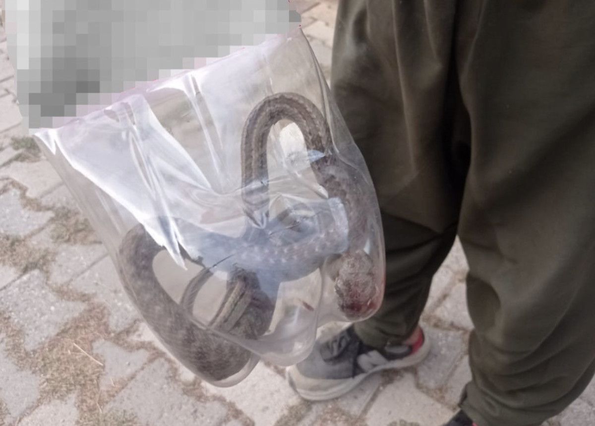 Yılanı doğaya salan Abdülhamit Doğan, “3 gündür çocuklarımızı korkutan yılanı sonunda yakalayarak doğal yaşam alanına geri bıraktık. Onu öldürmedik çünkü her canlının yaşama hakkı var” dedi.