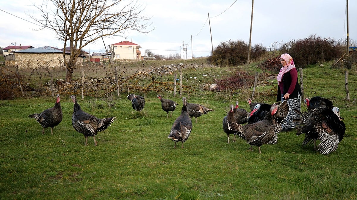 Esencik köyünde yetiştiricilik yapan 52 yaşındaki Emine Gündüz de bu yıl doğal ortamda 20 hindi beslediğini söyledi.